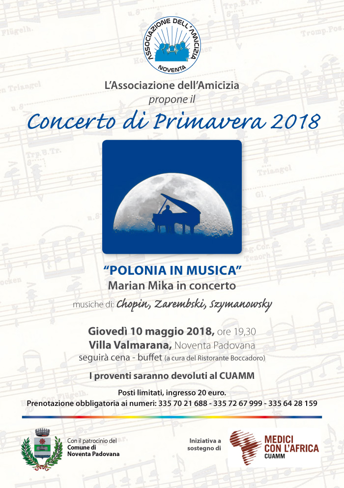 maggio, 2018 Concerto di Primavera gio10mag19:30Concerto di PrimaveraNoventa Padovana Dettagli eventoL'Associazione dell'Amicizia propone un concerto i cui proventi saranno devoluti a Medici con l'Africa Cuamm. Programma: Concerto di primavera 2018 Dettagli evento L’Associazione dell’Amicizia propone un concerto i cui proventi saranno devoluti a Medici con l’Africa Cuamm. Programma: Concerto di primavera 2018 Orario(Giovedì) 19:30 CalendarioGoogleCal Ricordi Comments are closed.