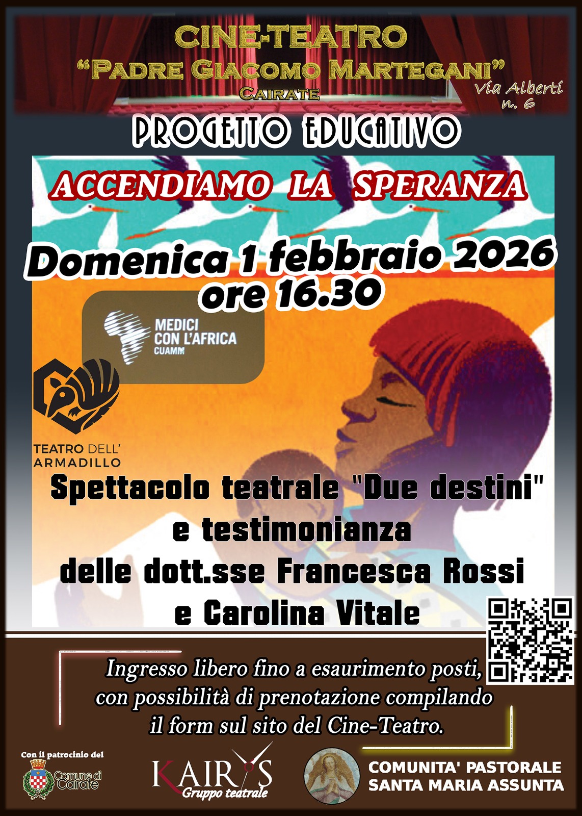 febbraio, 2026 Spettacolo teatrale. DUE DESTINI dom01feb16:30Spettacolo teatrale. DUE DESTINICAIRATE (VA) Orario(Domenica) 16:30 CalendarioGoogleCal Ricordi Comments are closed.