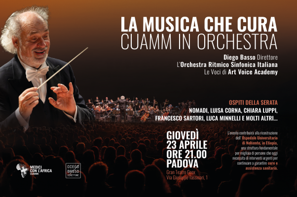 Il maestro Diego Basso, l’Orchestra ritmico sinfonica italiana e le voci di Art voice Academy propongono un concerto di beneficenza per sostenere il Cuamm e il suo impegno per la ricostruzione dell’ospedale di Nekemte, in Etiopia.