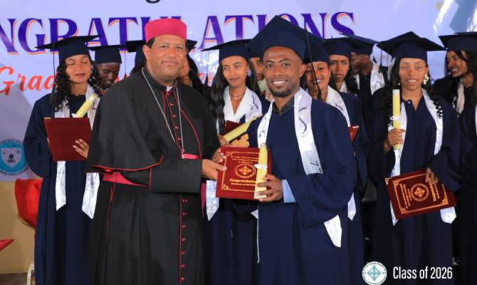 La cerimonia di consegna dei diplomi ha riempito l’aula magna dell’ospedale San Luca di Wolisso, sabato 21 febbraio. Nei corridoi, all’esterno e in quella stessa sala si è respirato aria di festa mentre 50 persone, tra studenti e studentesse dei corsi di ostetricia e infermieristica, attendevano con gioia di sentir pronunciato il proprio nome. Ad aprire la cerimonia, il vescovo Abune Lukas Teshome Fikre che a questi ragazzi e ragazze ha rivolto parole di stima e incoraggiamento.