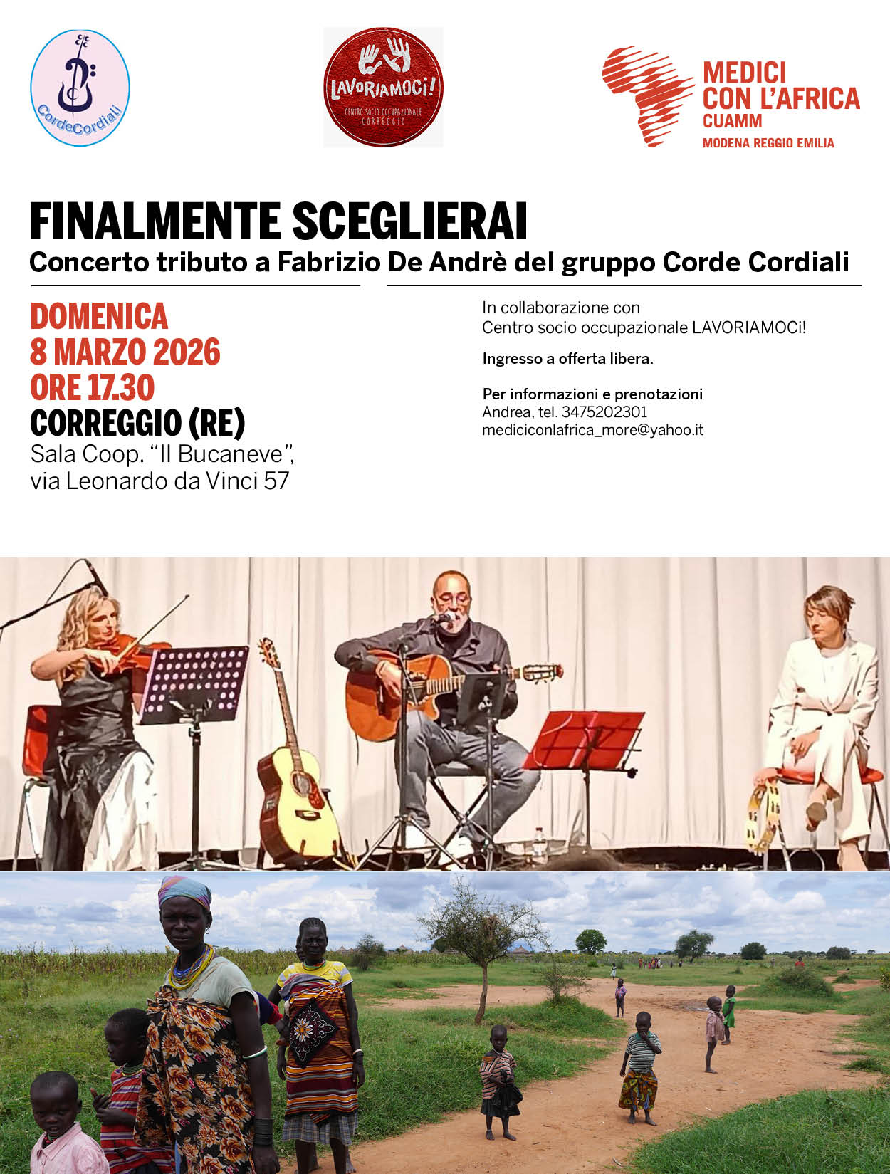dom08mar17:30FINALMENTE SCEGLIERAI. Concerto tributo a Fabrizio De Andrè del gruppo Corde CordialiCORREGGIO (RE)