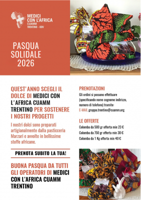 Per prenotare la tua colomba pasquale puoi effettuare il tuo ordine specificando nome, cognome, indirizzo e numero telefonico alla nostra mail: gruppo.trentino@cuamm.org