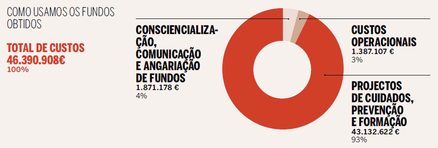 Em 2020, a Médicos com África CUAMM Ong-Onlus teve saídas para um total de 46.390.908 euros. Destes, 93% (43.132.622 euros) foram investidos em projetos de prevenção, tratamento e formação nos países de intervenção. Os custos operacionais representaram 3% e incluem a gestão geral da estrutura, pessoal em serviço, amortizações, encargos financeiros, impostos e taxas. Os custos de comunicação, sensibilização e angariação de fundos representaram 4% e incluem a organização de eventos na Itália, publicações, relações com os meios de comunicação, educação para o desenvolvimento, fidelização, novas campanhas e o pessoal dos sectores Comunicação e Relações com o território e angariação de fundos.